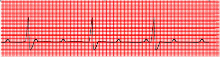 23. Choice C is the correct answer. This patient is in complete heart block or third degree AV block. It is characterized by complete AV dissociation. The P waves and QRS complexes don't have any relationship. The P waves and QRS complexes will march out with calipers equal distance. Atropine has not really shown to be effective and was taken out of ACLS protocols. Epinephrine would only be indicated if there was no pulse. Digoxin may make the patient worse worse since he is bradycardic already.